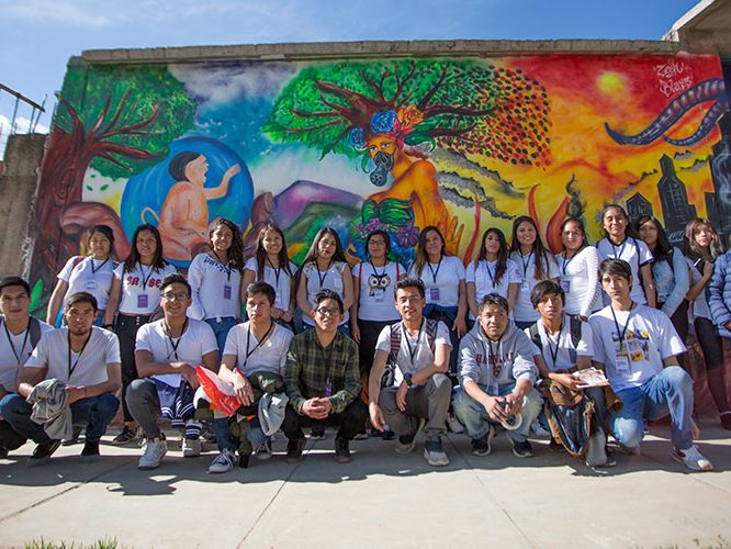 A través de un colorido mural, estudiantes concientizan sobre el cuidado del medio ambiente a familias del barrio de Ocopilla.