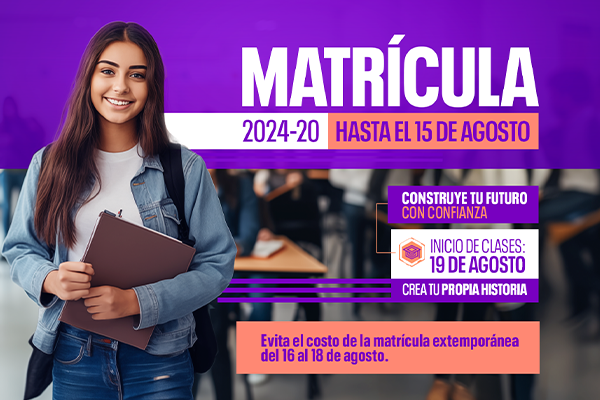 ¡Solo hasta hoy! Matricúlate al periodo 2024-20 sin los costos de la matrícula extemporánea 14 agosto, 2024