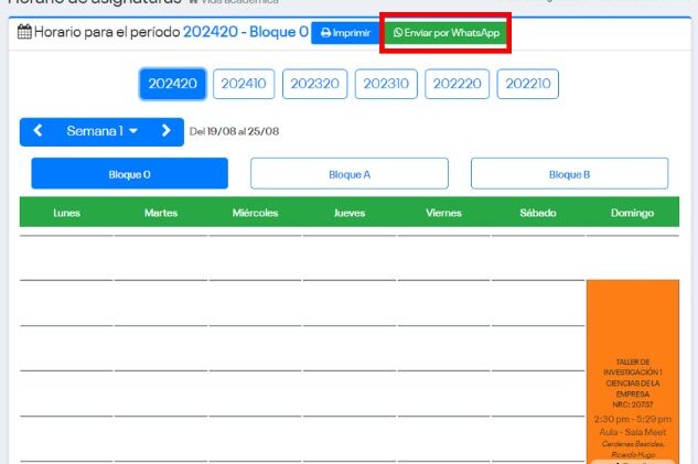 ¡Nuevo beneficio UC activado! Ahora puedes enviar tus horarios de clases a tu WhatsApp desde tu Portal del Estudiante 21 agosto, 2024