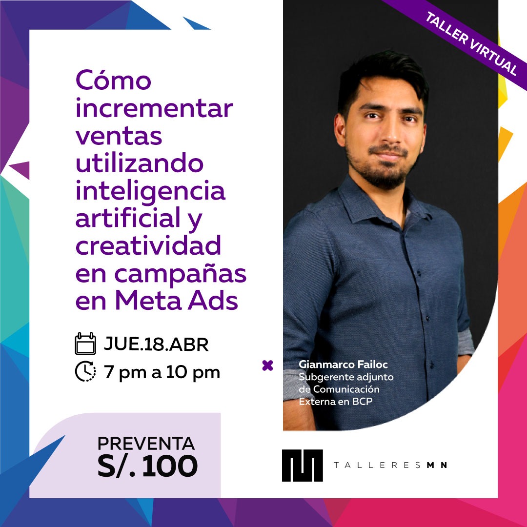 Nos encontramos en pleno auge de la era digital y es necesario que innoves constantemente tus conocimientos en ventas y campañas que involucren las redes sociales y la inteligencia artificial. Por ello, gracias al convenio de nuestra EAP de Administración y Marketing puedes participar en los talleres virtuales: “Cómo incrementar ventas utilizando inteligencia artificial y creatividad en campañas en Meta Ads” que desarrollará Mercado Negro, este jueves 18 de abril de 7 a 10 p.m. con uno de los expertos en Marketing más reconocidos del Perú.