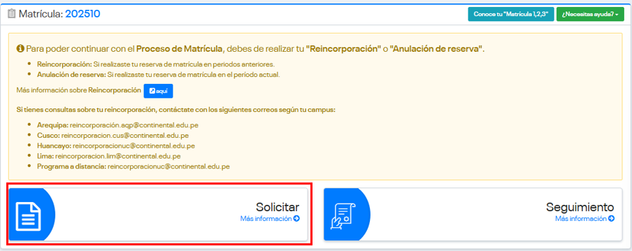 - Si no tienes deudas o documentos pendientes, y dependiendo de tu situación académica, tu reincorporación a la Conti se realizará de manera inmediata.