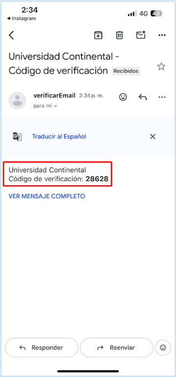 - Abre tu correo electrónico personal y busca el mensaje con el código.