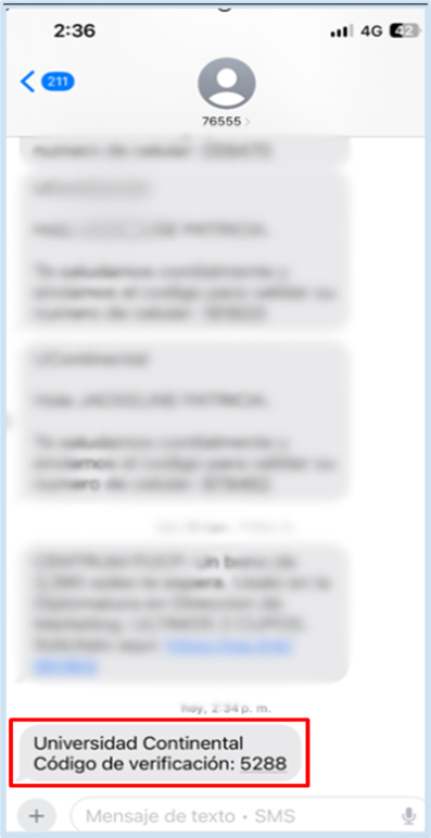- Revisa los mensajes de texto (SMS) en tu celular y verifica el código que hayas recibido.