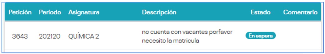 - Selecciona la asignatura a solicitar como lista de espera para la habilitación de vacantes.