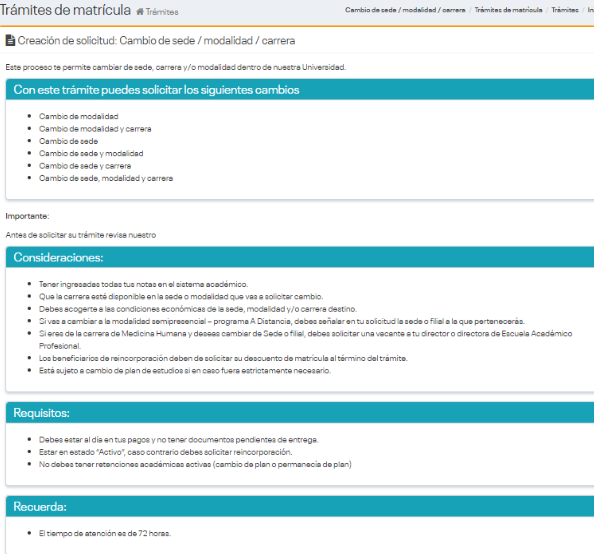 - Cambio de sede, modalidad y carrera