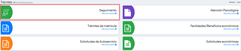 - Puedes realizar el seguimiento a tu solicitud, ingresando a la opción “Trámites”, sección “Seguimiento”.