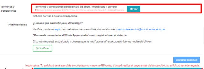 - Rellena la solicitud seleccionando la modalidad, sede y/o carrera del cambio que deseas realizar.