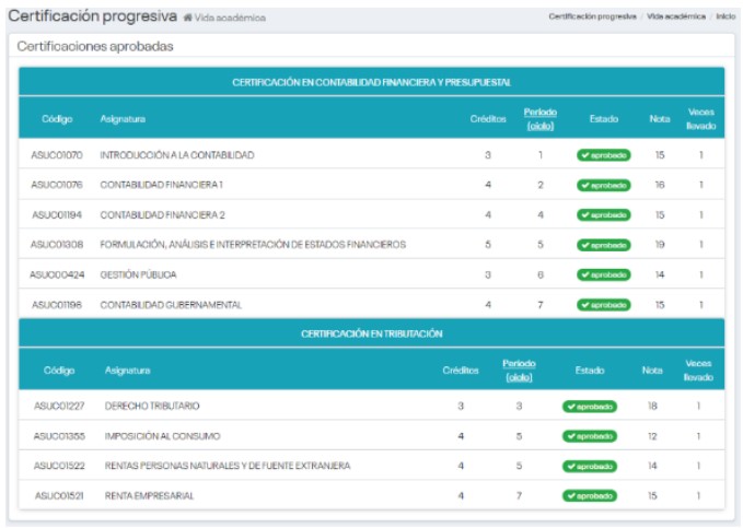 - Haber aprobado las asignaturas comprendidas en la respectiva Certificación progresiva.