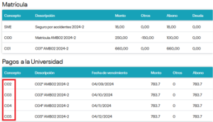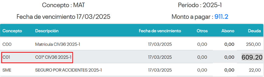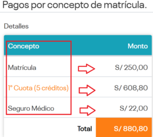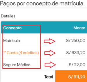 Para los estudiantes que ingresaron antes del periodo 2021-10, el pago se realiza de acuerdo al siguiente detalle: En la matrícula del periodo par e impar pagas por los siguientes conceptos: Matrícula + 1ra cuota por 5 créditos + seguro por accidentes.