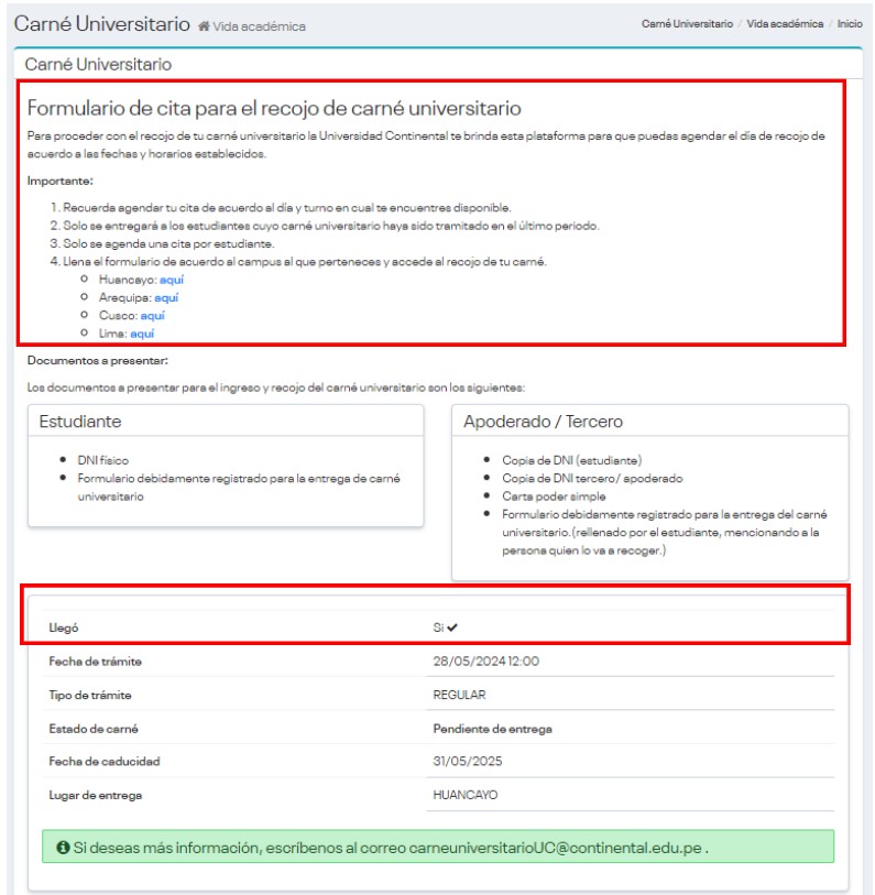 - Verifica si llegó tu Carné Universitario y procede a agendar la fecha de recojo del mismo a través de los formularios por el campus al que perteneces.