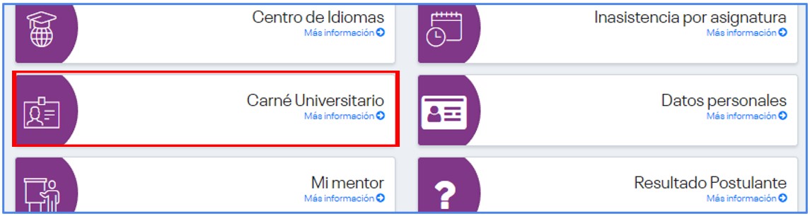 Busca la opción “Carné Universitario”.