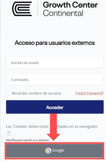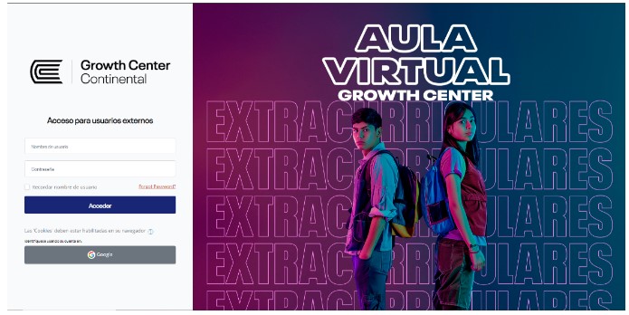 Acceda al Aula Virtual con el siguiente enlace: https://growthcentervirtual.continental.edu.pe/login/index.php.