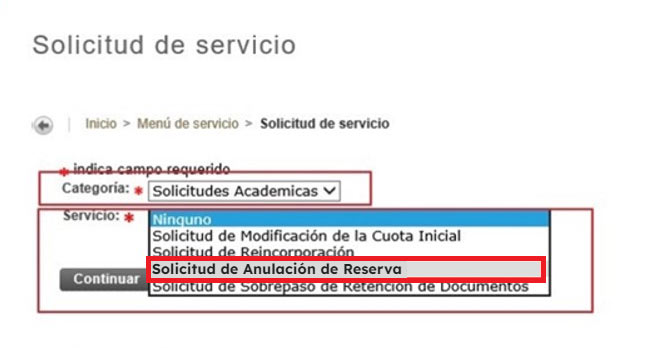 - Anulación de Reserva: Si realizaste tu RESERVA de matrícula en el periodo actual.