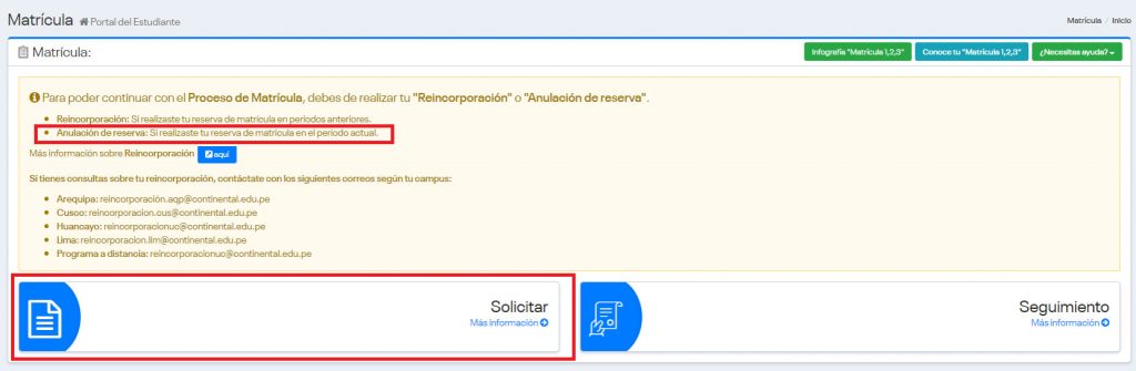 - Reincorporación: Si realizaste tu RESERVA de matrícula en periodos anteriores.