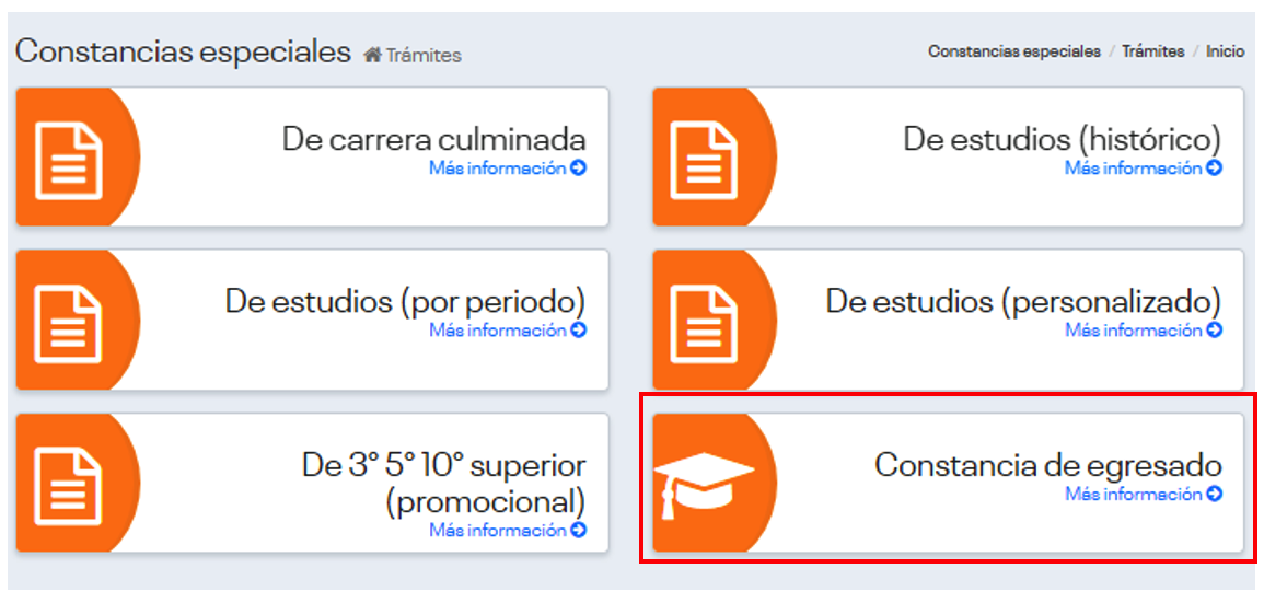 Dentro de las opciones debe elegir “Constancia de egresado”