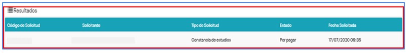 - Podrás realizar el seguimiento de tu solicitud, ingresando a la opción “Trámites”, sección “Seguimiento”. En este espacio visualizarás una lista de las solicitudes tramitadas para su respectivo seguimiento.