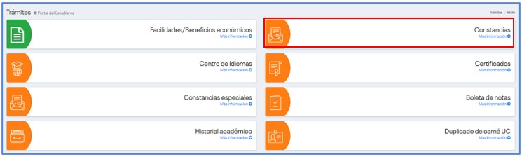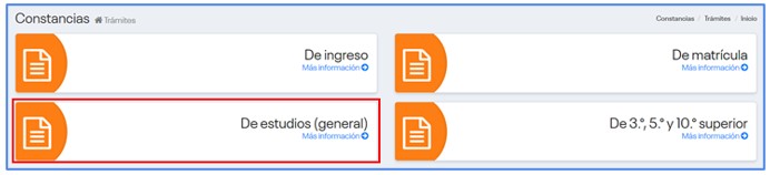 - Haz clic en “Constancias” y elige la opción “De estudios (general)”.