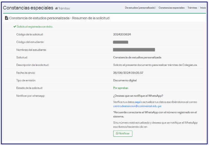 Una vez generado la solicitud podrás visualizar el resumen del mismo.