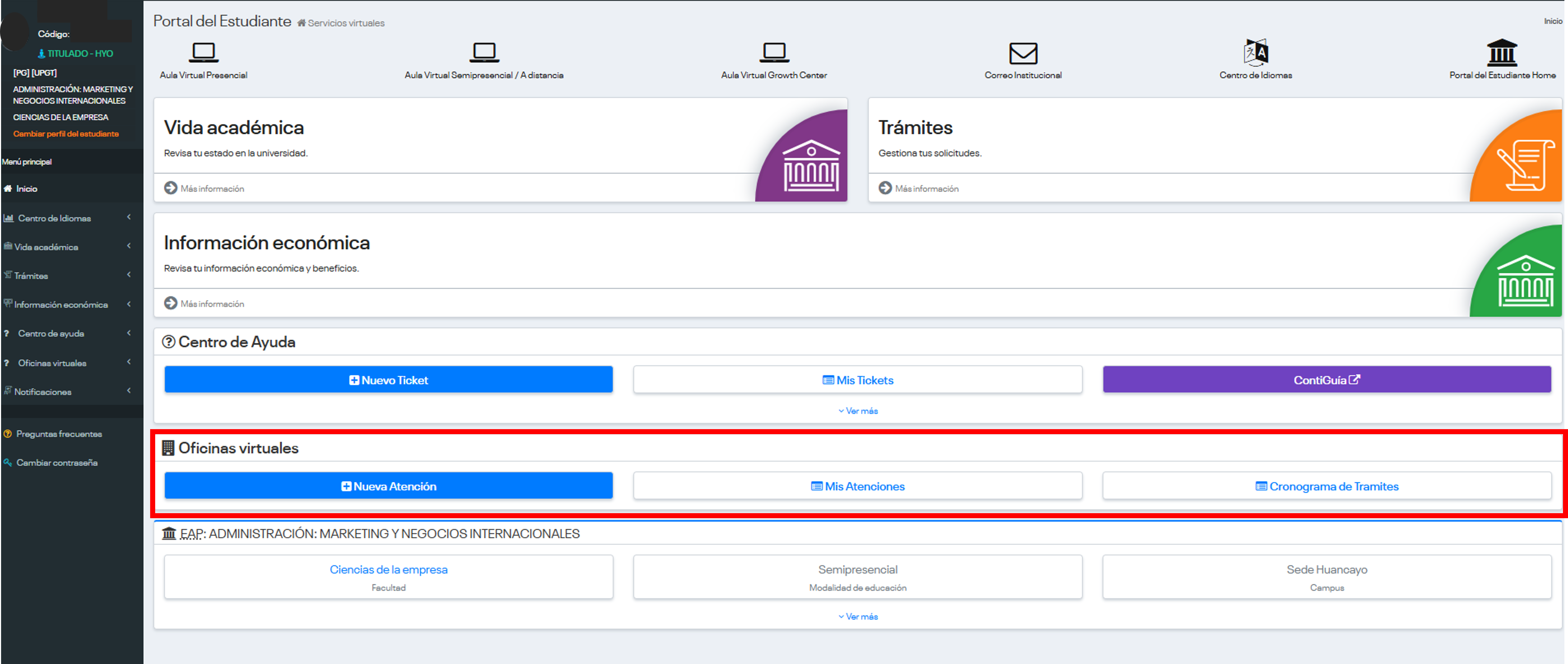 - Trámites diversos (Traslado interno, cambio de modalidad/sede/carrera, asignaturas multimodal/asignatura dirigida, entre otros).