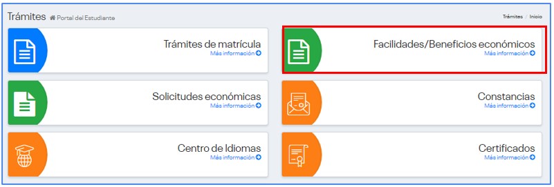Busca “Facilidades/Beneficios económicos” y haz clic en ella.