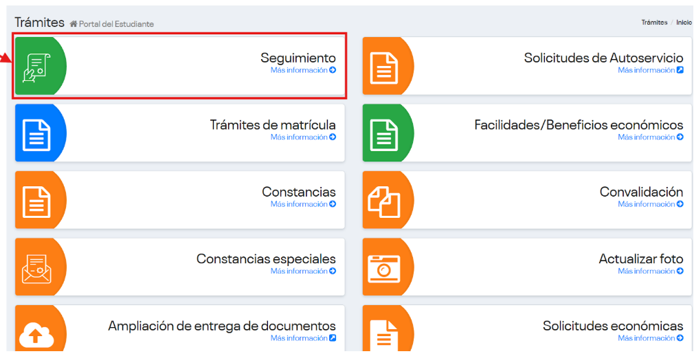- Podrás realizar el seguimiento de tu solicitud, ingresando a la opción “Trámites” y sección “Seguimiento”.