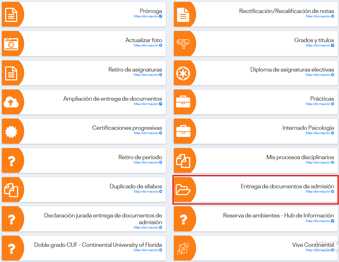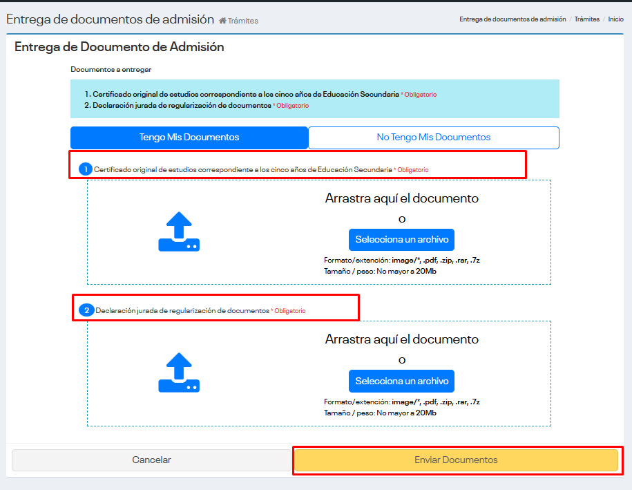 - Haz clic en la opción “Entrega de documentos de admisión”