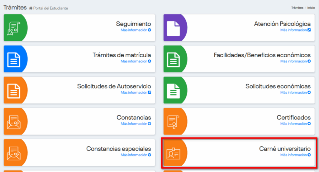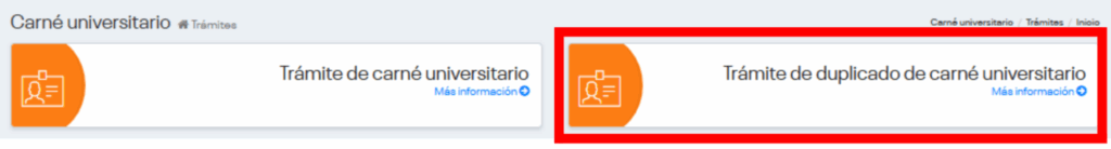 Seleccione la opción “Trámites” y dale clic en la opción “Carné Universitario”