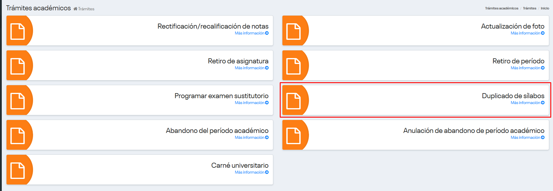 Selecciona “Duplicado de Sílabos”.