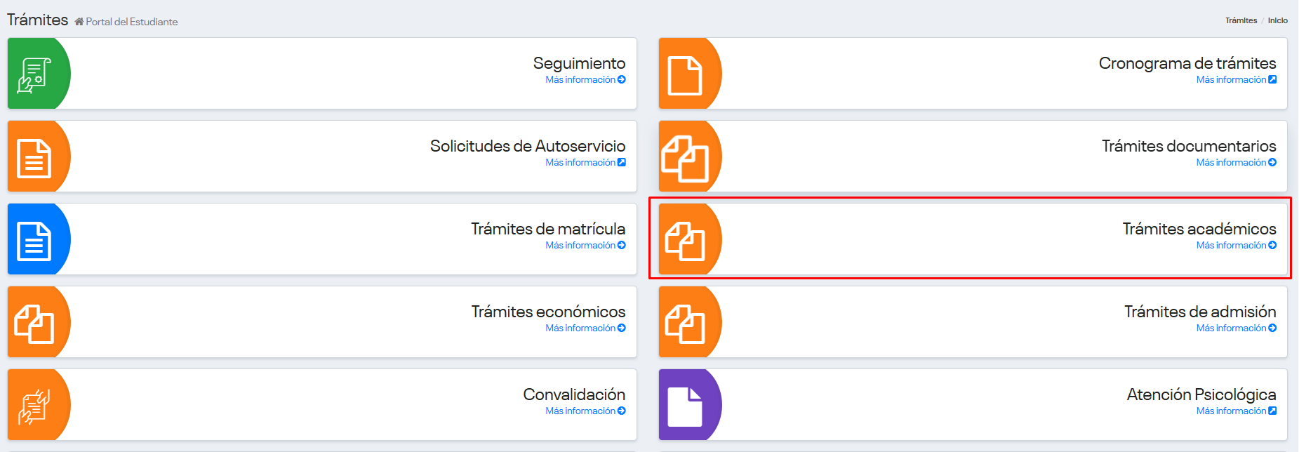Selecciona la opción Trámites – Trámites académicos.
