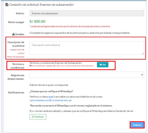 Completa la solicitud, lee detenidamente los términos y condiciones, click en “solicitar”.