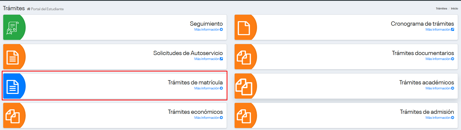 Luego selecciona la opción “Trámites de matrícula”.