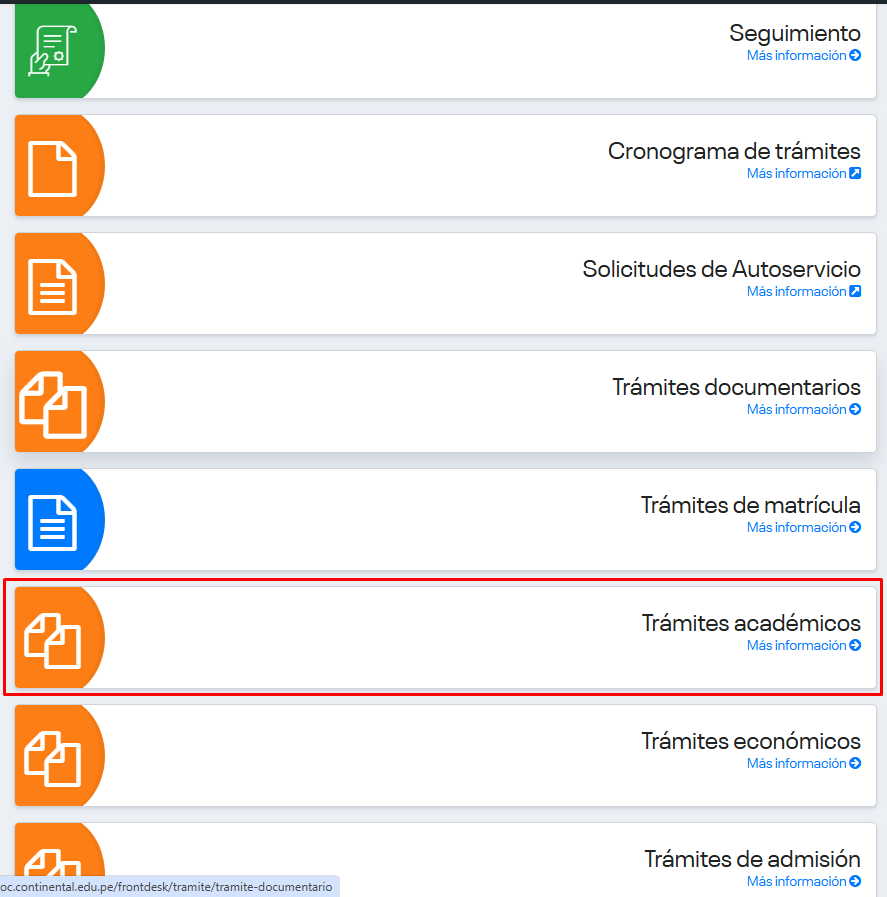 Selecciona la opción “Trámites “,Haz clic en la opción “Trámites académicos”