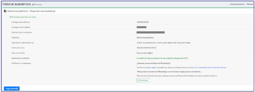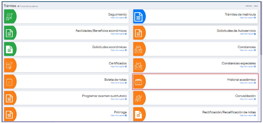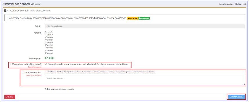 - Realizar el pago por historial académico y derecho de trámite: S/ 10.00 y S/ 1.00, respectivamente.