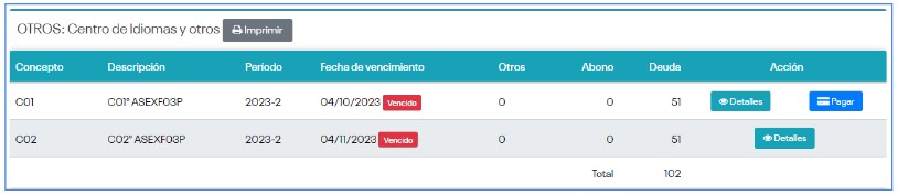 Podrás visualizar los pagos de extracurriculares con la descripción ASEX.