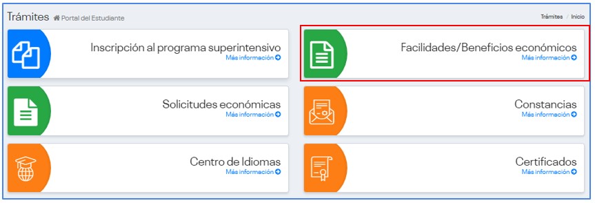 Busca “Facilidades/Beneficios económicos” y haz clic en ella.