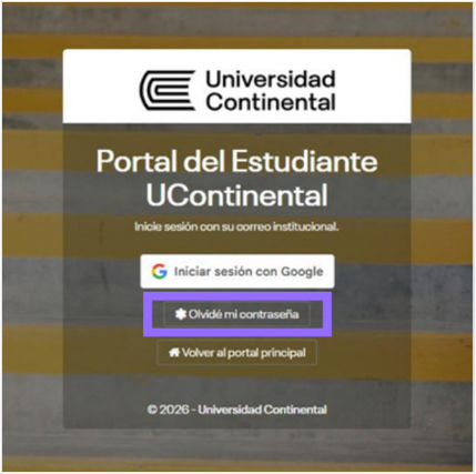 - Ingresa al servicio a través del siguiente URL: https://estudiantes.continental.edu.pe/ingresar