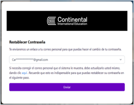 - Valida los datos de tu correo personal registrado, luego haz clic en “Enviar”