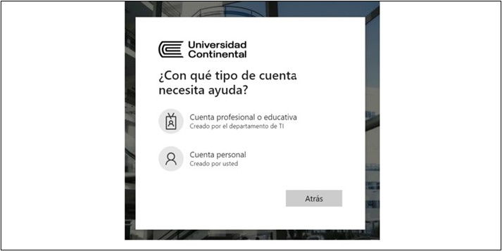 - Ingresa tu correo para que te dirija a la página de login de Microsoft, luego selecciona la opción ¿No puede acceder a su cuenta?