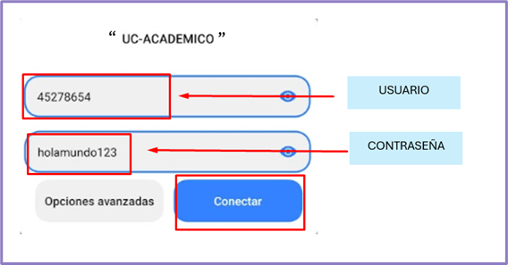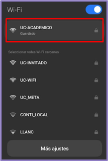 Paso 1: Ingresa a tu celular y en el icono de Wifi y busca la siguiente red: UC – ACADEMICO.