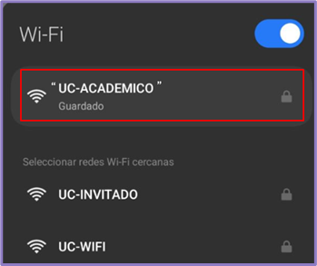 Paso 1: Ingresa a tu celular en el icono de Wifi y busca la siguiente red: UC-ACADÉMICO.
