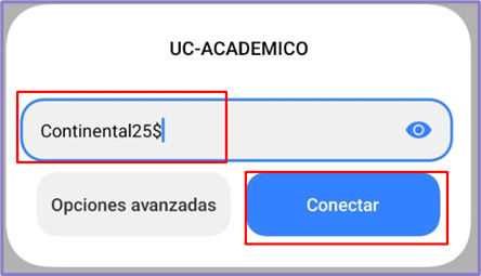 Paso 2: Registra la contraseña: @Conti2025-@ y haces clic en “Conectar”